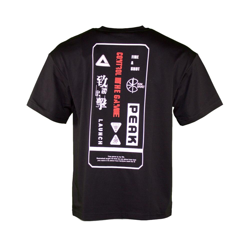 Pánské triko značky Peak v klasickém střihu. Na hrudi trika je zobrazeno logo značky a na zádech trika je potisk v basketbalovém stylu.